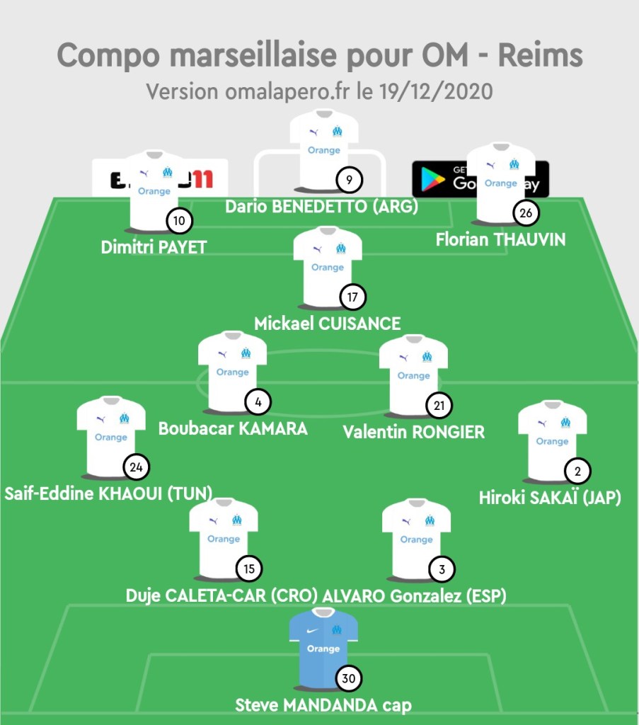 La paire Kamara-Rongier devrait manger le milieu adverse qui jouera rapidement sur les ailes. Reste à savoir si Cuisance arrivera à trouver instinctivement Payet qui devrait rendre Foket barge.