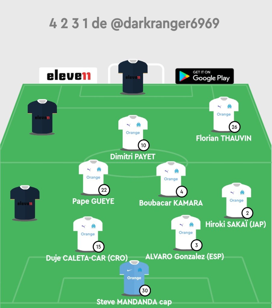 Cette équipe peut-être complétée par Luis Henrique et Radonjic à gauche mais il sont trop irréguliers pour être titulaires tout comme Amavi. Là aussi Sakai est trop léger offensivement pour combiner avec un ailier de débordement. Germain bien évidemment ne rentre nul part dans ce système.