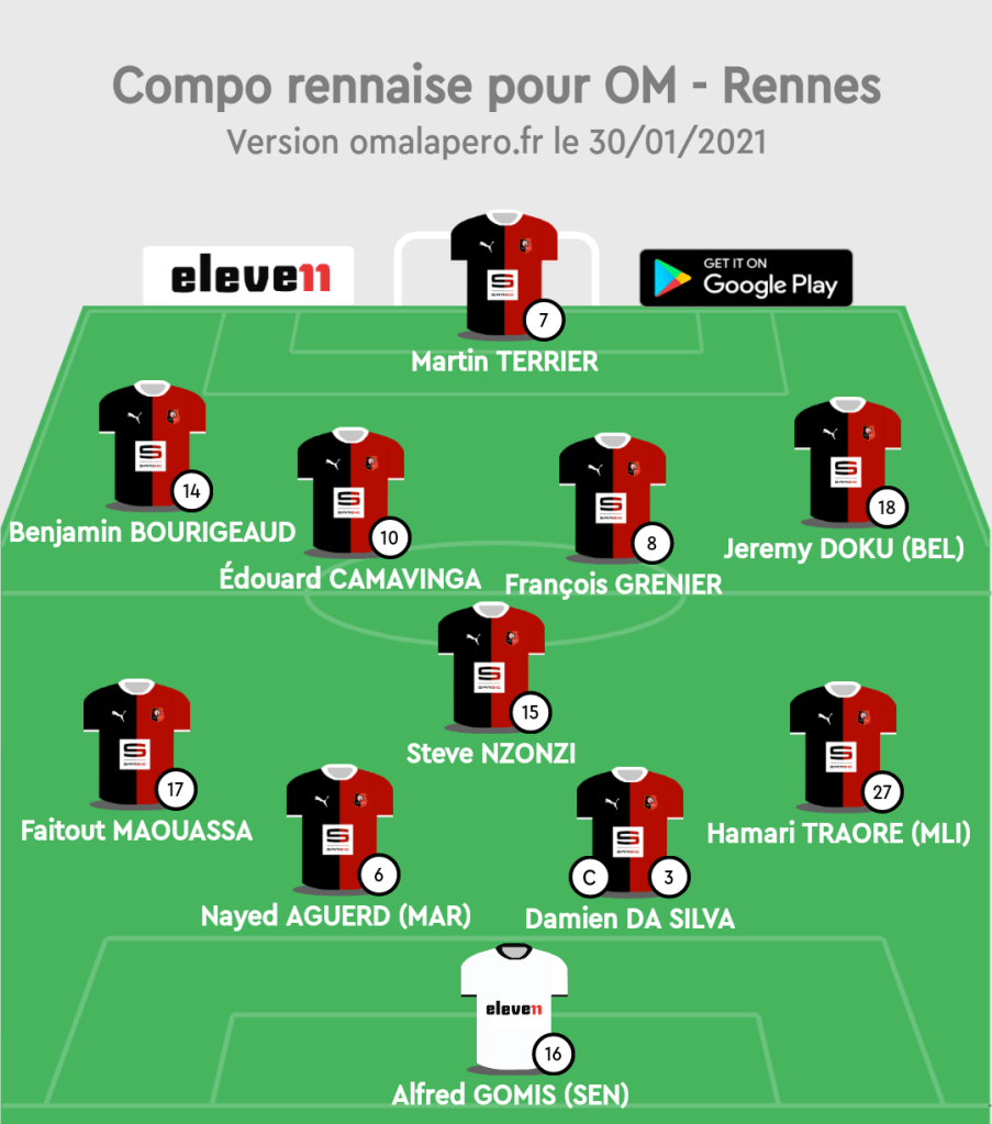Les rennais se présenteront certainement en 4/1/4/1 avec bourigeaud sur l’aile gauche et Grenier à la creation. Voilà ce que ça devrait donner: