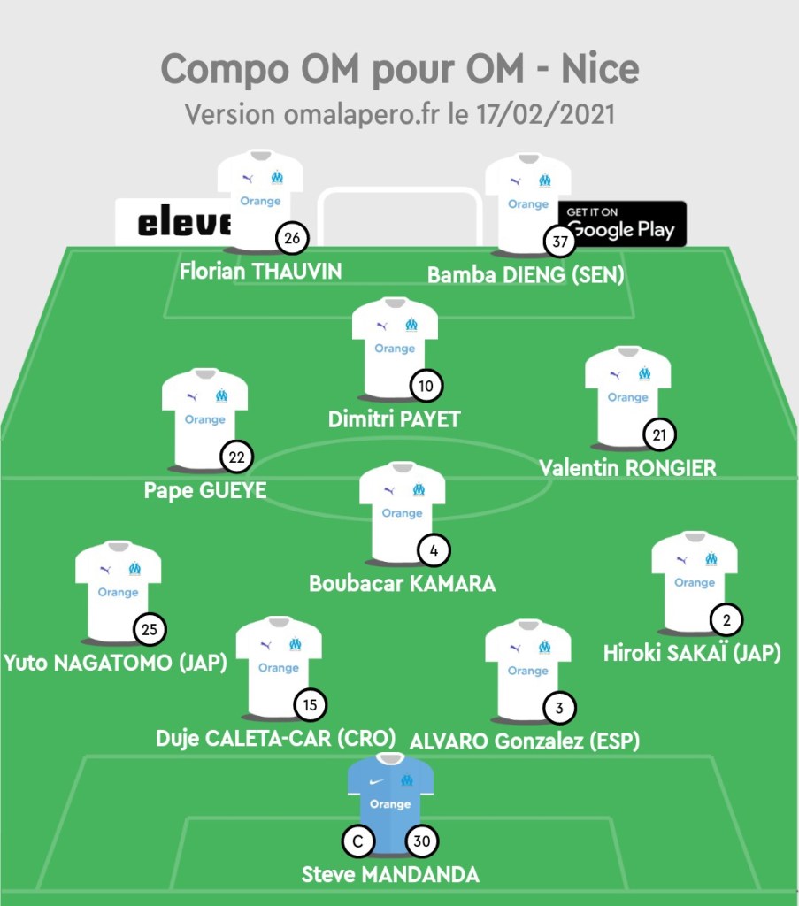 Dans cet atmosphère surréaliste, où notre cher président veux choisir les supporters du club, où les joueurs n’osent pas piper mots de peur de perdre leur dernier 6 mois de salaire. Notre OM bafoué et diminué par les blessures et cartons mais surtout par le manque d’implication de ses mêmes joueurs rencontre un Nice diminué lui aussi. Dante, Attal, Dolberg et Reine Adélaïde toujours sur le carreau ( Saliba et Tobido ne sont pas qualifiés)