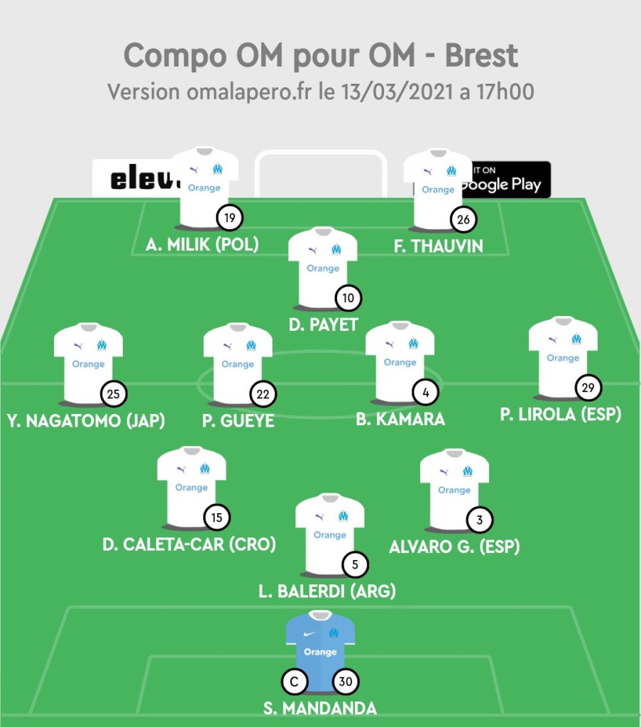 Pour mettre cette belle équipe à mal, nous devrions presser haut et relancer tres rapidement. Pour cela, l’OM à l’apéro vous propose ce onze Sampaoliste:
