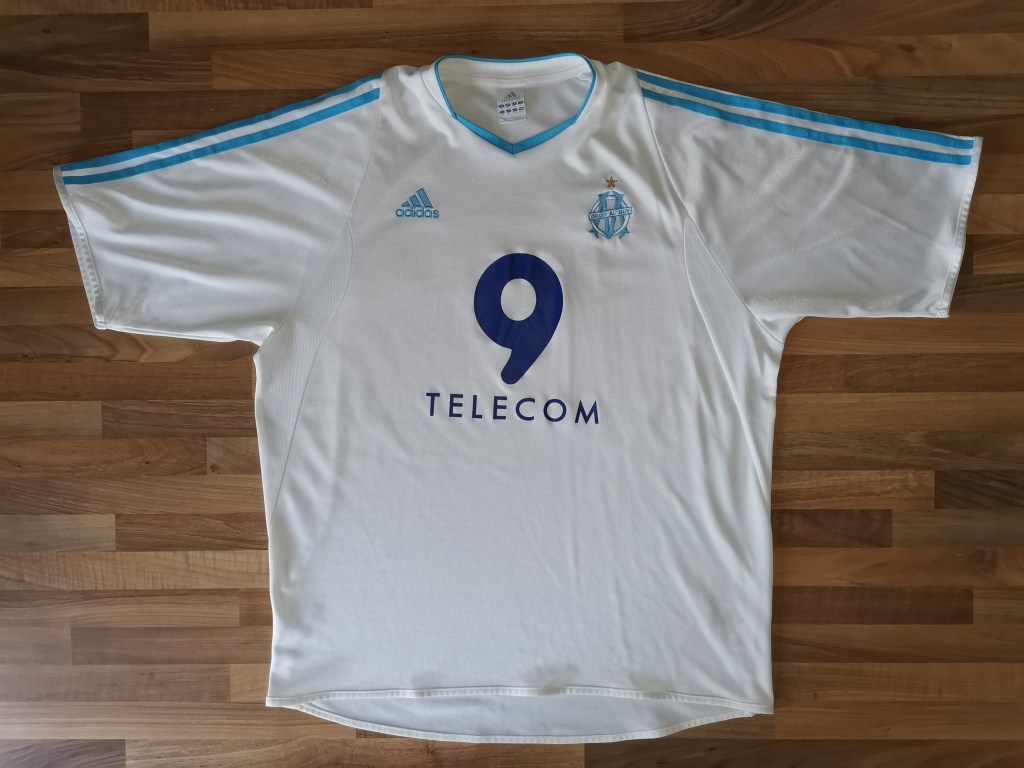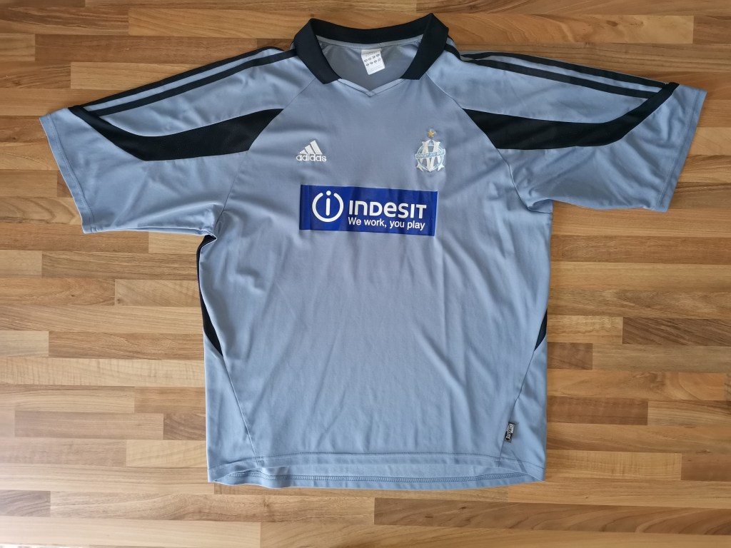 - Le logo « ADIDAS » et l’emblème du club sont toujours en poitrine avec les trois bandes sur les épaules.