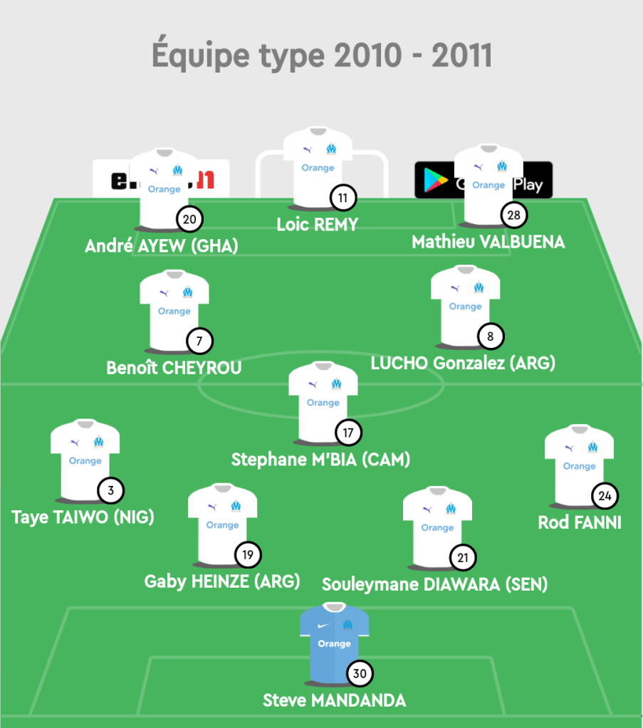 Arrivées : André-Pierre GIGNAC (Toulouse), Loic REMY (OGC Nice), Cesar AZPILICUETA (ESP) (CA Osasuna ESP), Rod FANNI (Stade Rennes en décembre 2010), André AYEW (GHA) (Arles-Avignon retour de prêt), Cédric D’ULIVO (Cassis Carnoux retour de prêt), Jean-Philippe SABO (AC Ajaccio retour de prêt), Leyti N’DIAYE (SEN) (AC Ajaccio retour de prêt), Jules GODA (CAM) (SC Bastia en janvier 2011), Cédric D’ULIVO (AC Ajaccio retour de prêt en janvier 2011), Pape M’BOW (SEN) (AC Ajaccio retour de prêt en décembre 2010).
