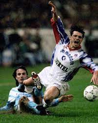 Eric DI MECO était un joueur de caractère, dans les couloirs des stades, il faisait comprendre a ses adversaires que ce ne serait pas une partie de plaisir et sur le terrain, c’était un teigneux aux tacles virils mais corrects (si, c’est vrai, je vous le jure à l’époque ça passait !!!!). Avec lui, pas d’amitié pendant le match. Notre JPP en a fait les frais lors de la finale de 1993 lorsqu’il eut l’audace de provoquer Fabien Barthez en lui mettant les crampons au visage, DI MECO est intervenu illico presto vers JPP en lui disant des « mots doux » et il a compris direct que c’était cuit pour lui et son équipe.