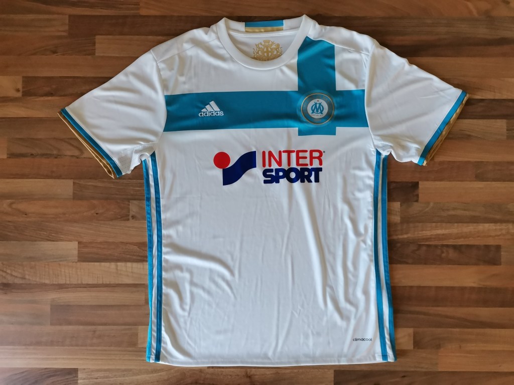 - Sur ce « home kit » c’est le grand retour de la croix de la ville de Marseille… enfin une partie de la croix tout du moins.