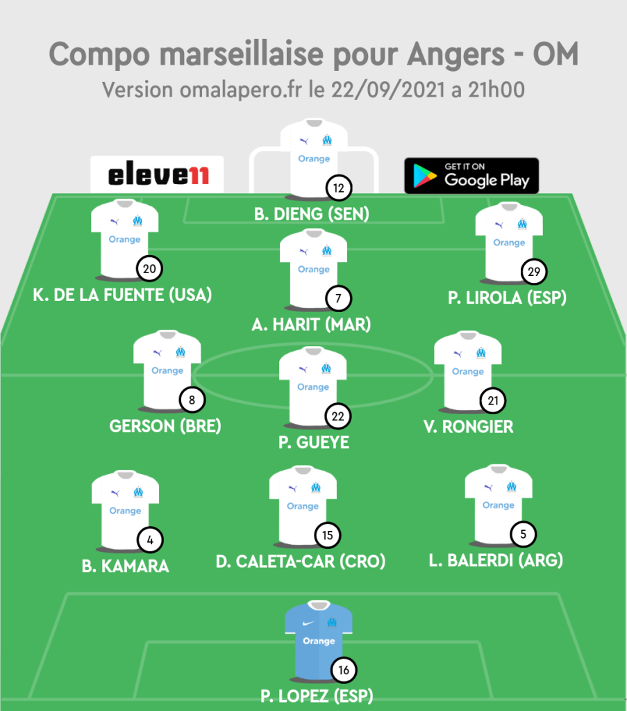 Pour étouffer et vite mener cette belle équipe d’Angers, l’OM à l’apéro vous propose ce onze.