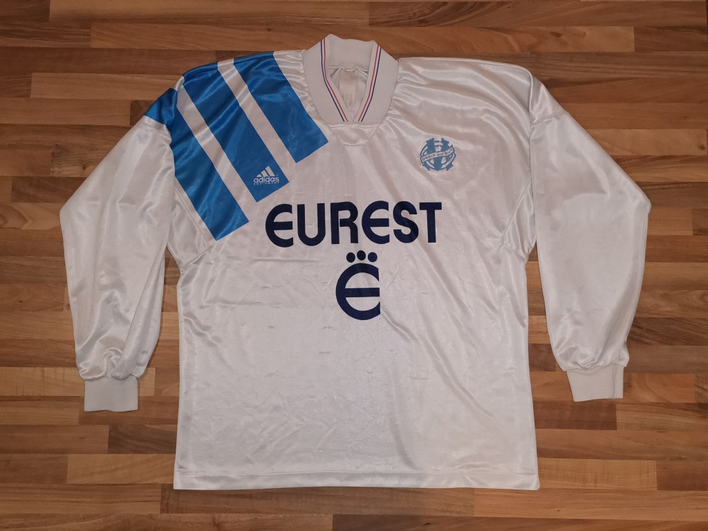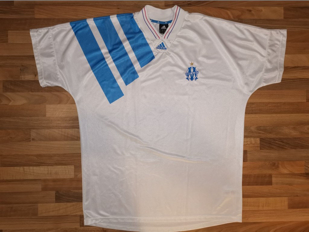 - Pour cette saison 1992 / 1993, l’OM conserve la gamme du maillot « ADIDAS » avec les trois bandes sur l’épaule droite.