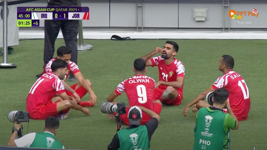 Mais en ce lundi 29, c’est surtout le match entre l’Irak et la Jordanie qui a marqué les esprits. Juste avant la mi-temps, les Jordaniens ouvraient le score, et célébraient leur but en mimant un déjeunant sur l’herbe.